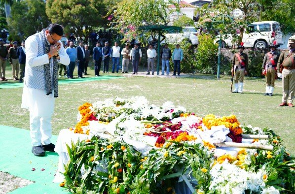 देहरादून। मुख्यमंत्री पुष्कर सिंह धामी ने सोमवार को पुलिस ऑफिसर्स कॉलोनी में पुलिस महानिरीक्षक केवल खुराना के पार्थिव शरीर पर पुष्पचक्र अर्पित कर श्रद्धांजलि दी। मुख्यमंत्री ने शोकाकुल परिवारजनों से मिलकर अपनी शोक संवेदनाएं व्यक्त की।