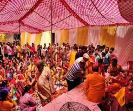विधिवत पूजा अर्चना के बाद श्रद्धालुओं के दर्शनार्थ रखा तेल कलश