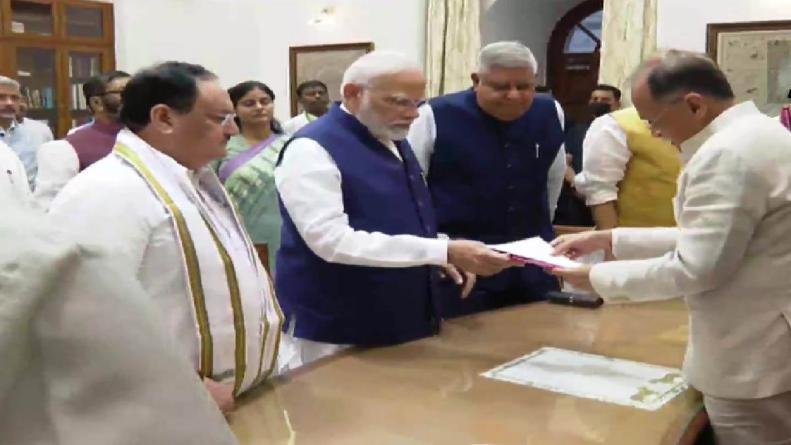नई दिल्ली, उपराष्ट्रपति पद के लिए एनडीए के उम्मीदवार जगदीप धनखड़ ने अपना नामांकन दाखिल कर दिया है। नामाकंन के वक्त पीएम नरेन्द्र मोदी, केंद्रीय गृह मंत्री अमित शाह, रक्षा मंत्री राजनाथ सिंह, नितिन गडकरी और भाजपा अध्यक्ष जेपी नड्डा मौजूद रहे। नामांकन भरने के बाद जगदीप धनखड़ ने कहा कि मैं देश के लोकतांत्रिक मूल्यों को बढ़ाने का हमेशा प्रयास करूंगा।