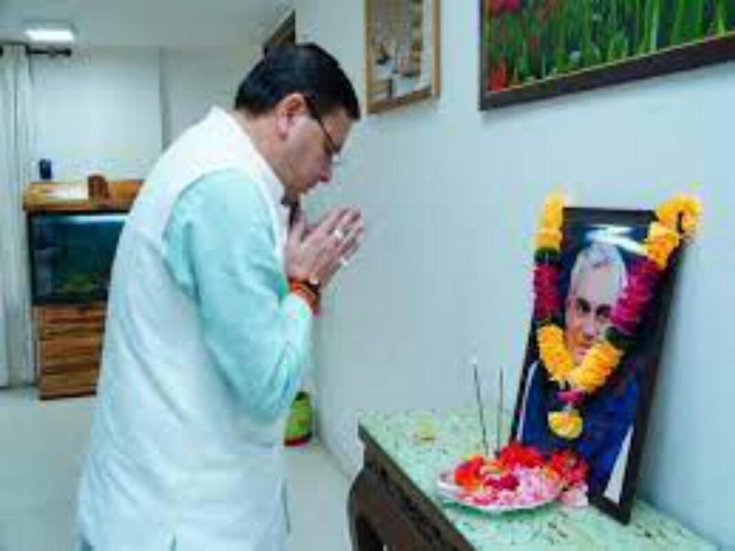 उत्तराखण्ड के मुख्यमंत्री पुष्कर सिंह धामी ने देश के पूर्व प्रधानमंत्री भारत रत्न, स्वर्गीय अटल बिहारी वाजपेयी की जयंती पर श्रद्धा सुमन अर्पित कर श्रद्धांजलि दी